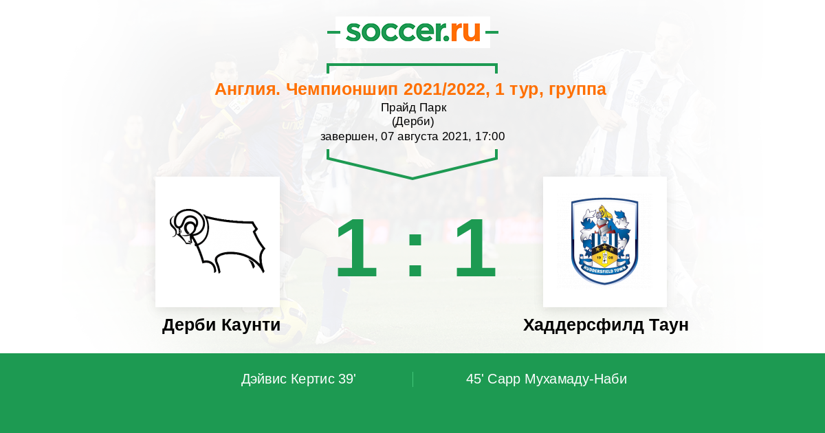 «Дерби Каунти» — «Хаддерсфилд». Прогноз на матч Чемпионшипа (07.08.2021)