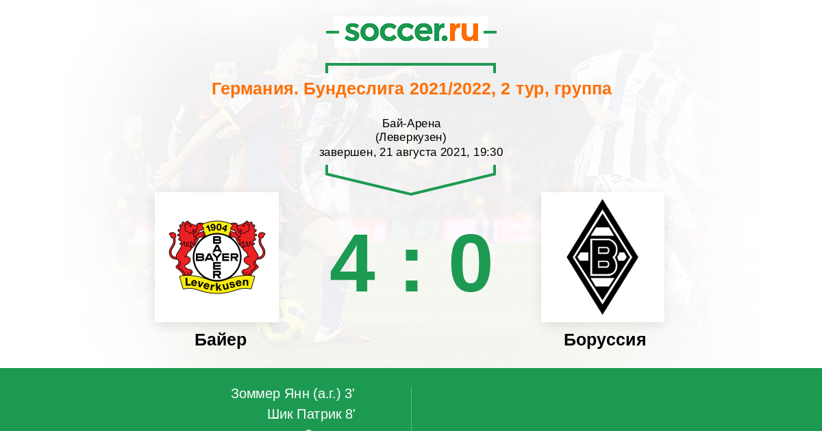 «Байер» — «Боруссия» М. Прогноз на матч Бундеслиги (21.08.2021)