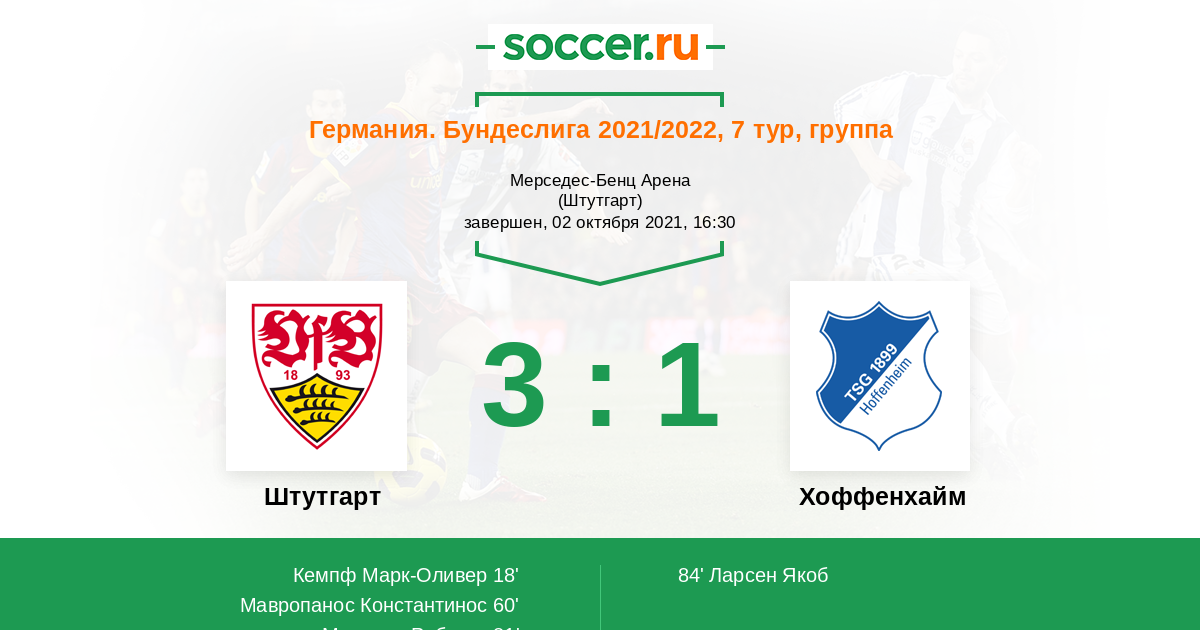 Записи блогов матча Штутгарт против Хоффенхайм