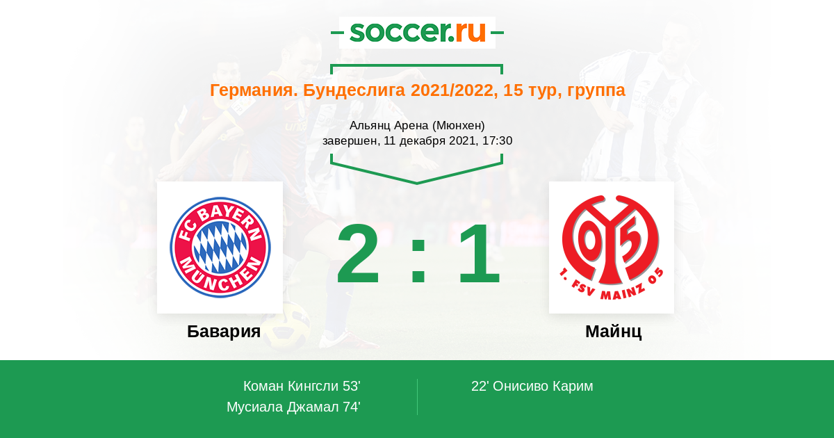 «Бавария» — «Майнц». Прогноз на матч Бундеслиги (11.12.2021)