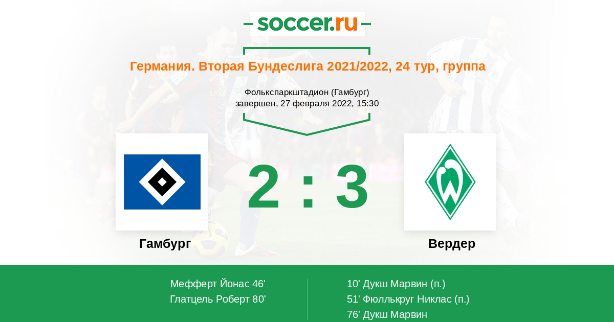 «Гамбург» — «Вердер». Прогноз на матч второй Бундеслиги (27.02.2022)