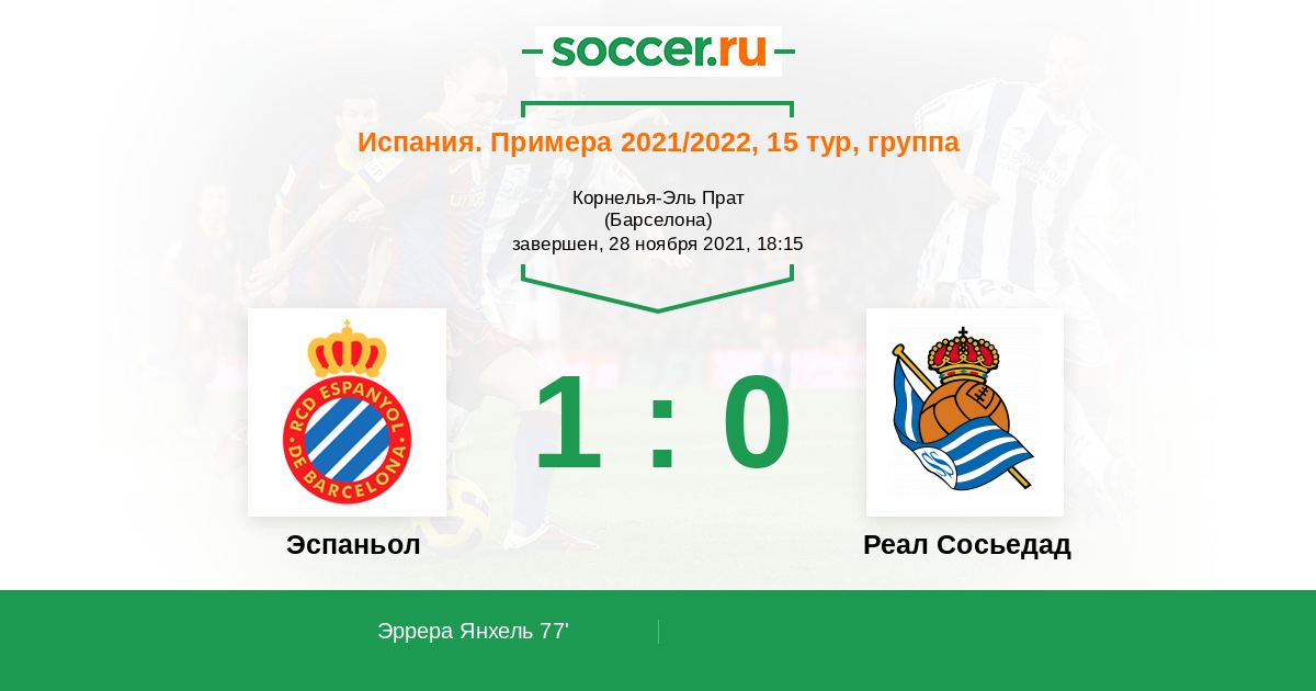 «Эспаньол» — «Реал Сосьедад». Прогноз на матч Примеры (28.11.2021)