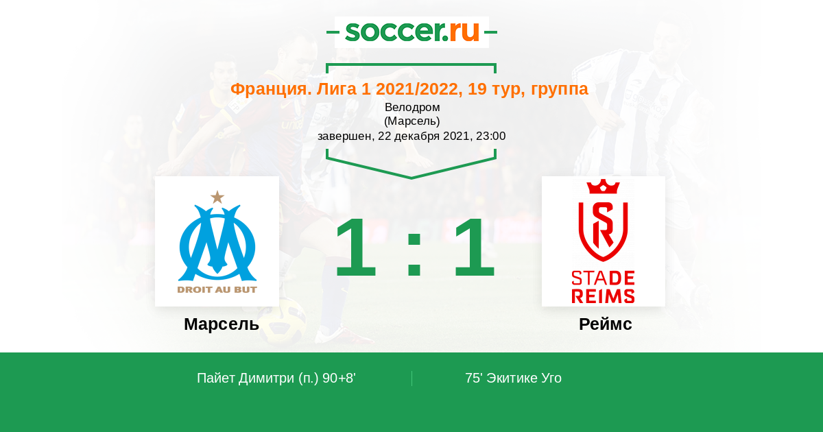 «Марсель» — «Реймс». Прогноз на матч французской Лиги 1 (22.12.2021)