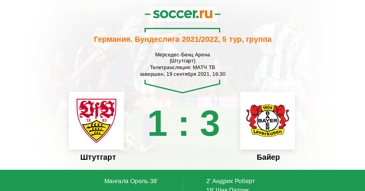 «Штутгарт» — «Байер». Прогноз на матч Бундеслиги (19.09.2021)
