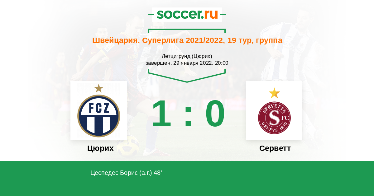 Записи блогов матча Цюрих против Серветт