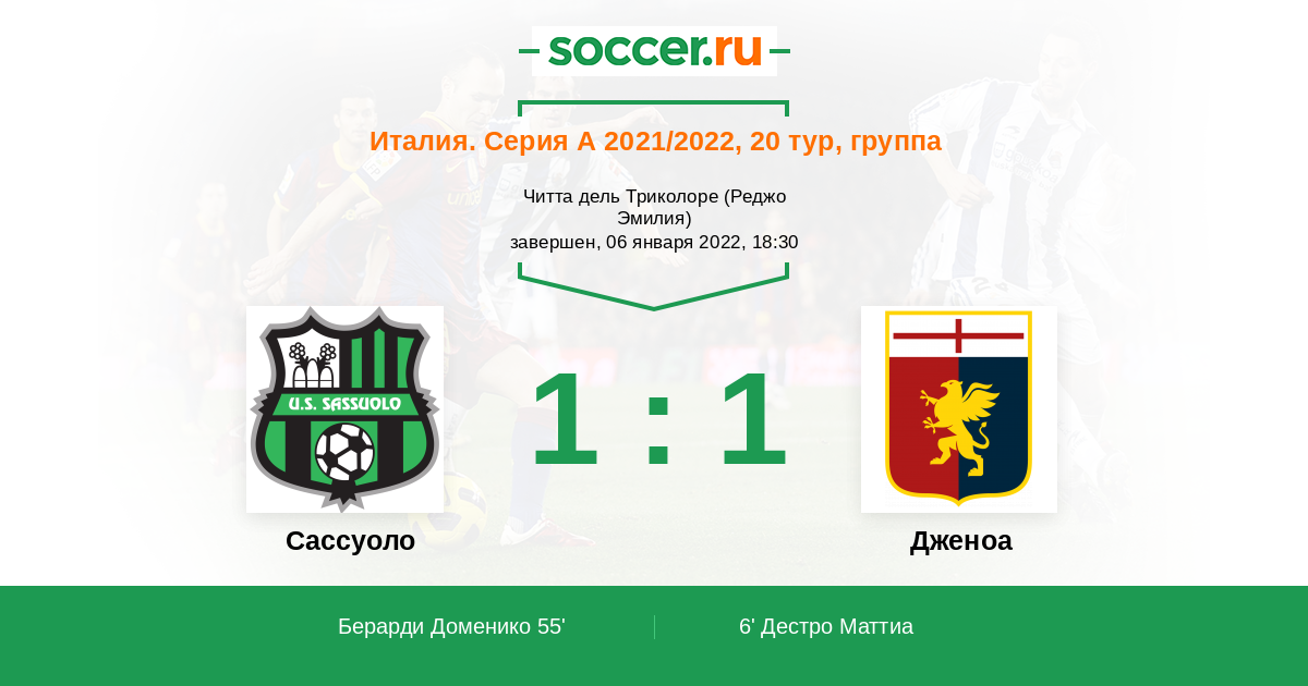 Записи блогов матча Сассуоло против Дженоа