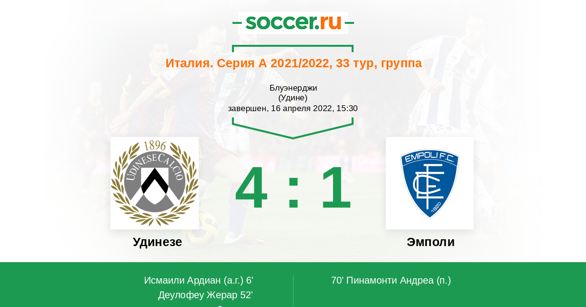 «Удинезе» — «Эмполи». Прогноз на матч итальянской Серии А (16.04.2022)