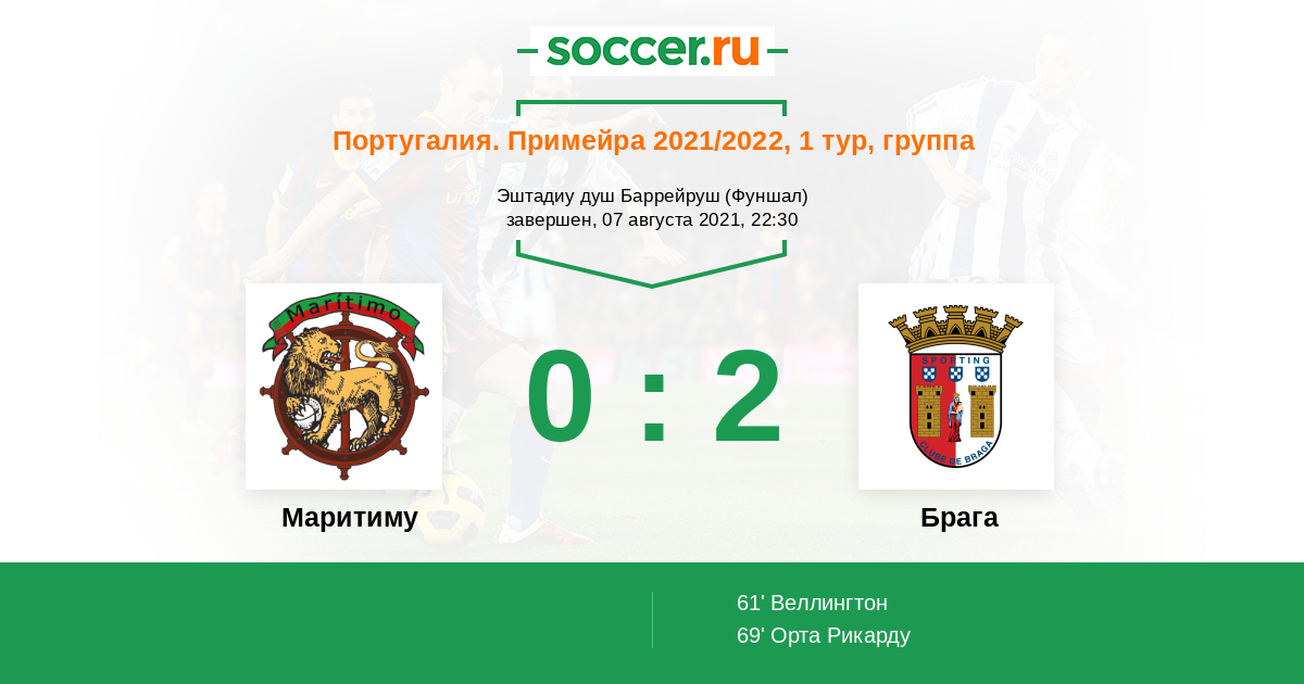 «Маритиму» — «Брага». Прогноз на матч чемпионата Португалии (07.08.2021)