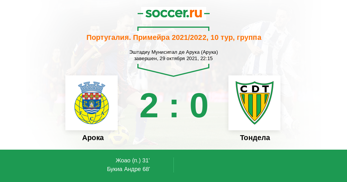 «Арока» — «Тондела». Прогноз на матч чемпионата Португалии (29.10.2021)