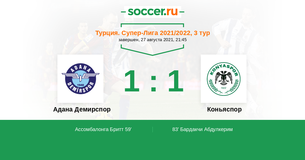 В 3-м туре турецкой Суперлиги «Адана Демирспор» сыграет против «Коньяспора». Мы приготовили обзор ставок и прогноз на матч, который состоится 27 августа 2021 года.