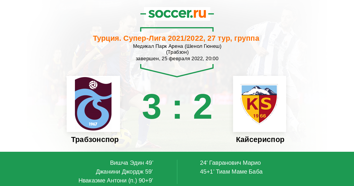 «Трабзонспор» — «Кайсериспор». Прогноз на матч турецкой Суперлиги (25.02.2022)