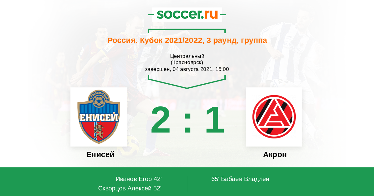 «Енисей» — «Акрон». Прогноз на матч Кубка России (04.08.2021)