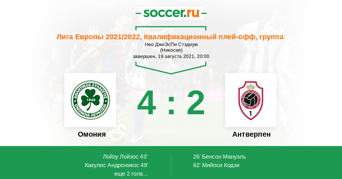 «Омония» — «Антверпен». Прогноз на матч квалификации Лиги Европы (19.08.2021)