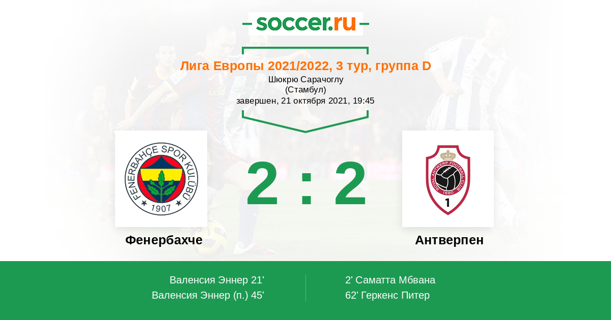 «Фенербахче» — «Антверпен». Прогноз на матч Лиги Европы (21.10.2021)