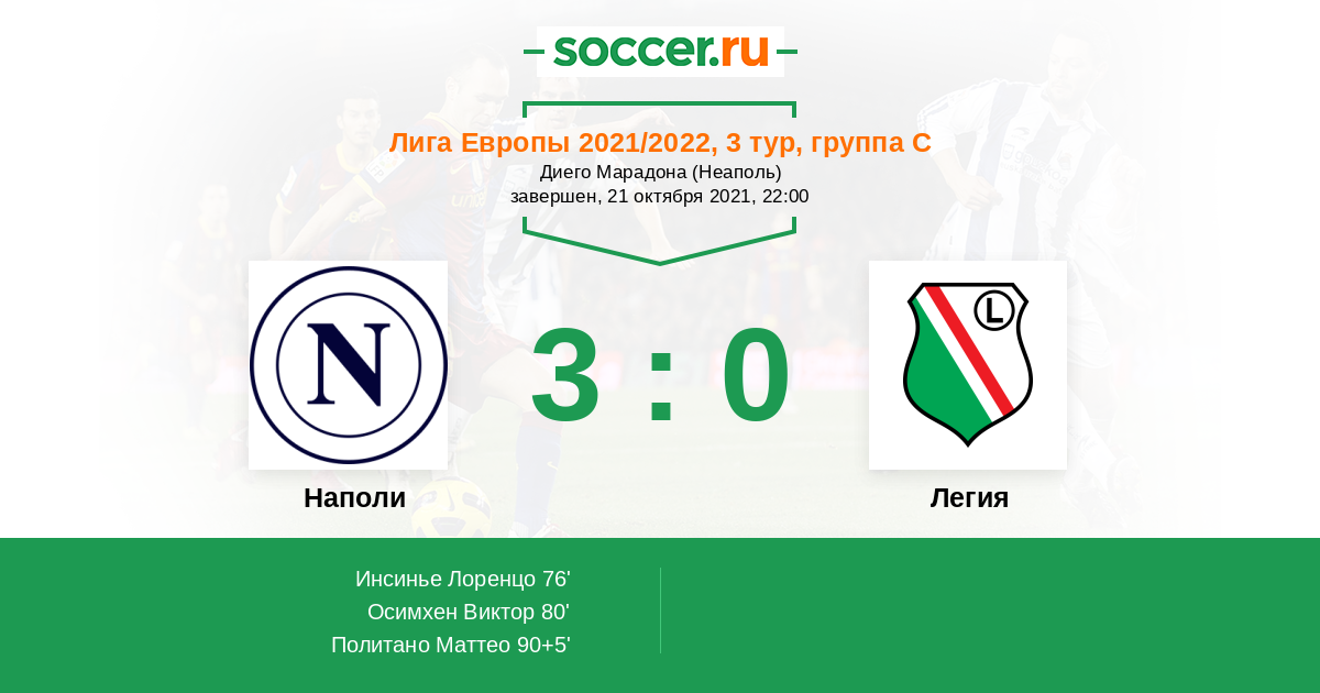 «Наполи» — «Легия». Прогноз на матч Лиги Европы (21.10.2021)