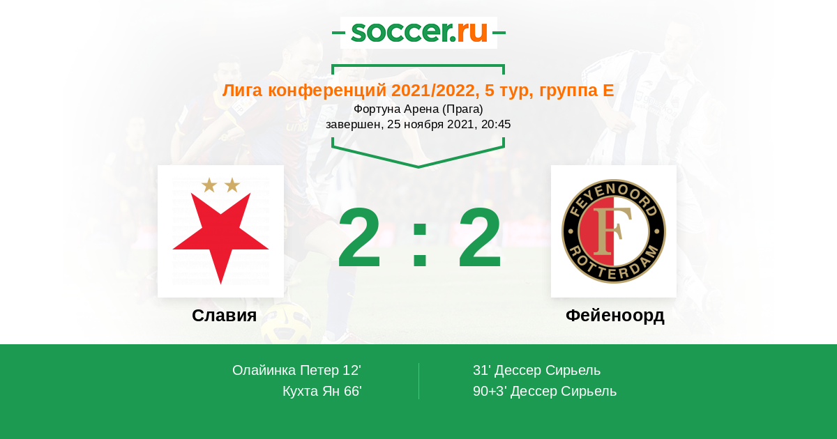 «Славия» — «Фейеноорд». Прогноз на матч Лиги конференций (25.11.2021)