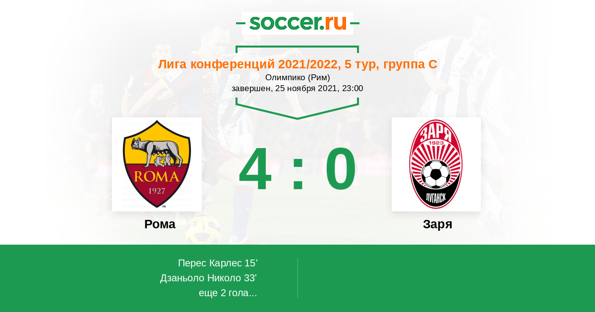 «Рома» – «Заря». Прогноз на матч Лиги конференций (25.11.2021)