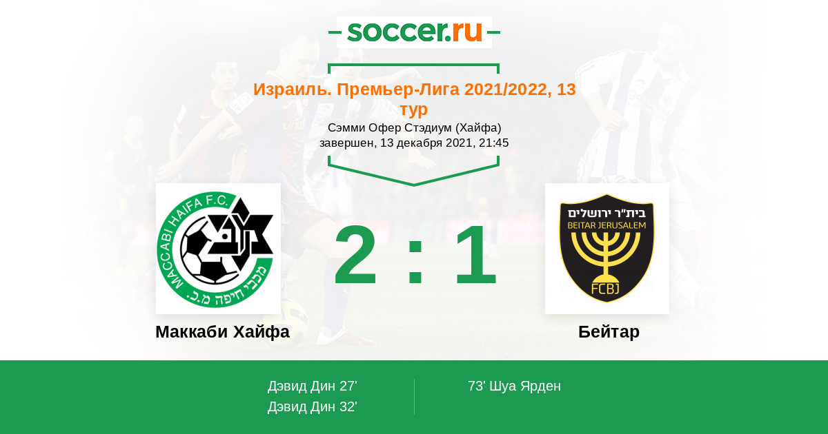 «Маккаби» Хайфа  — «Бейтар».  Прогноз на матч Суперлиги Израиля (13.12.2021)