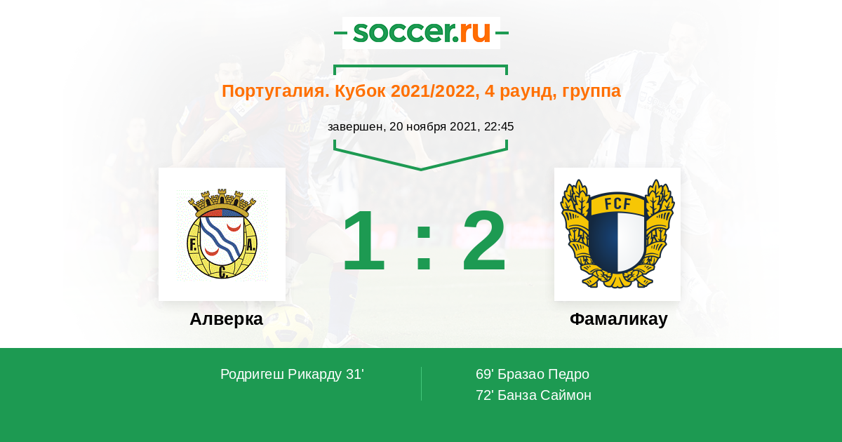 «Алверка» — «Фамаликау». Прогноз на матч Кубка Португалии (20.11.2021)
