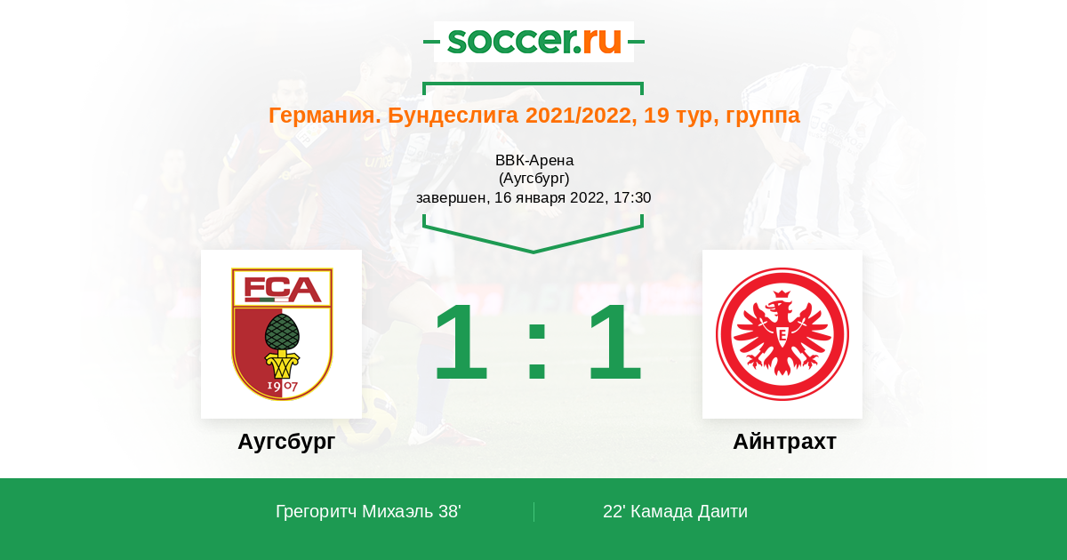Записи блогов матча Аугсбург против Айнтрахт