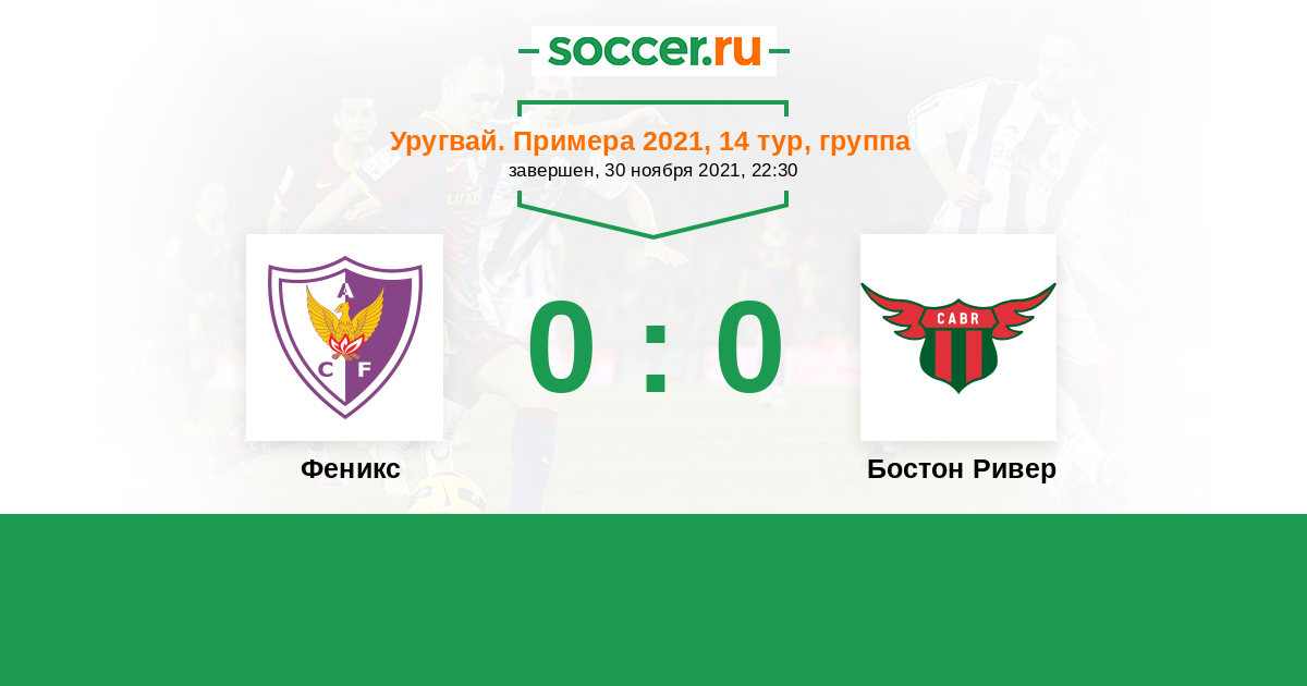 30 ноября 2021 года «Феникс» сыграет против «Бостона Ривер». Матч пройдет в рамках 14-го тура Премьер-лиги Уругвая.
