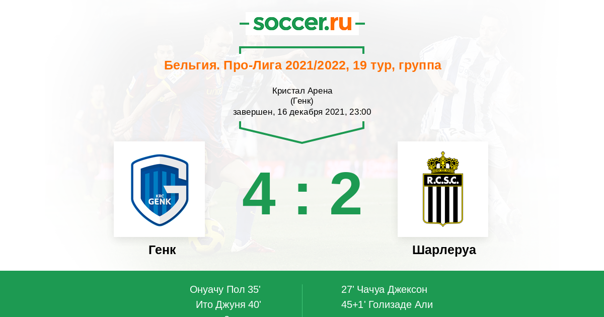 Записи блогов матча Генк против Шарлеруа