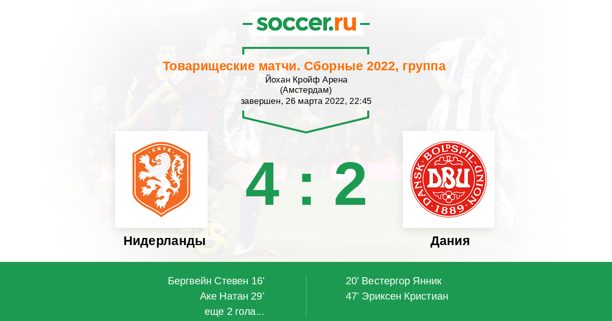 Нидерланды — Дания. Прогноз на товарищеский матч сборных (26.03.2022)
