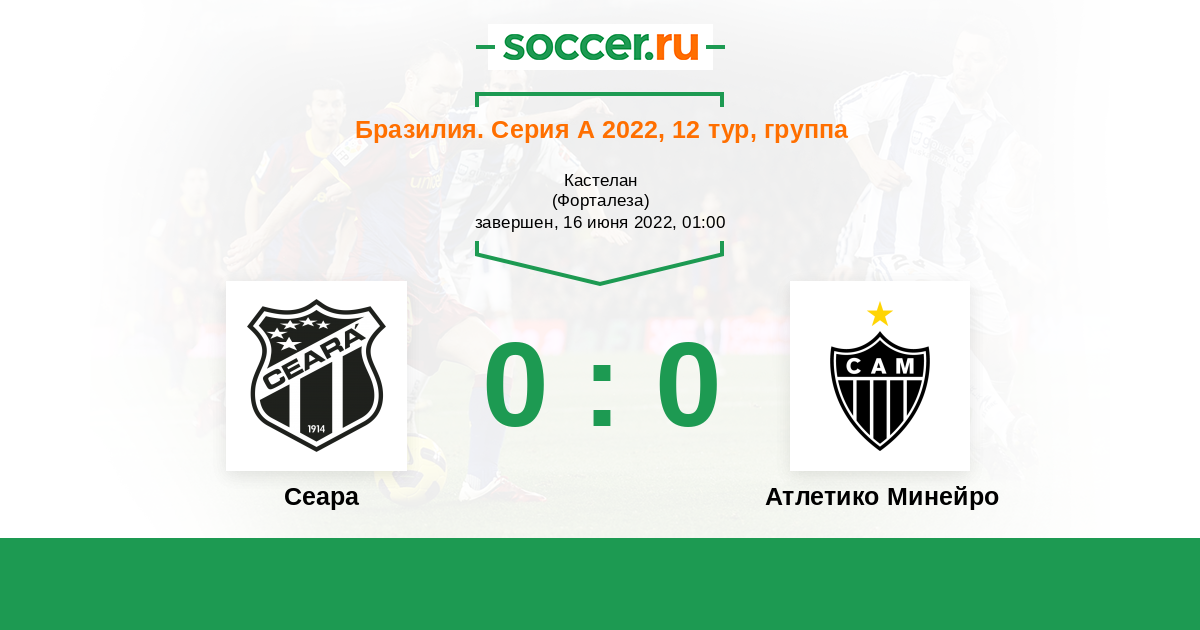 Вашему вниманию прогноз и анализ ставок букмекеров на матч бразильской Серии A «Сеара» — «Атлетико Минейро», который состоится 16 июня 2022 года.