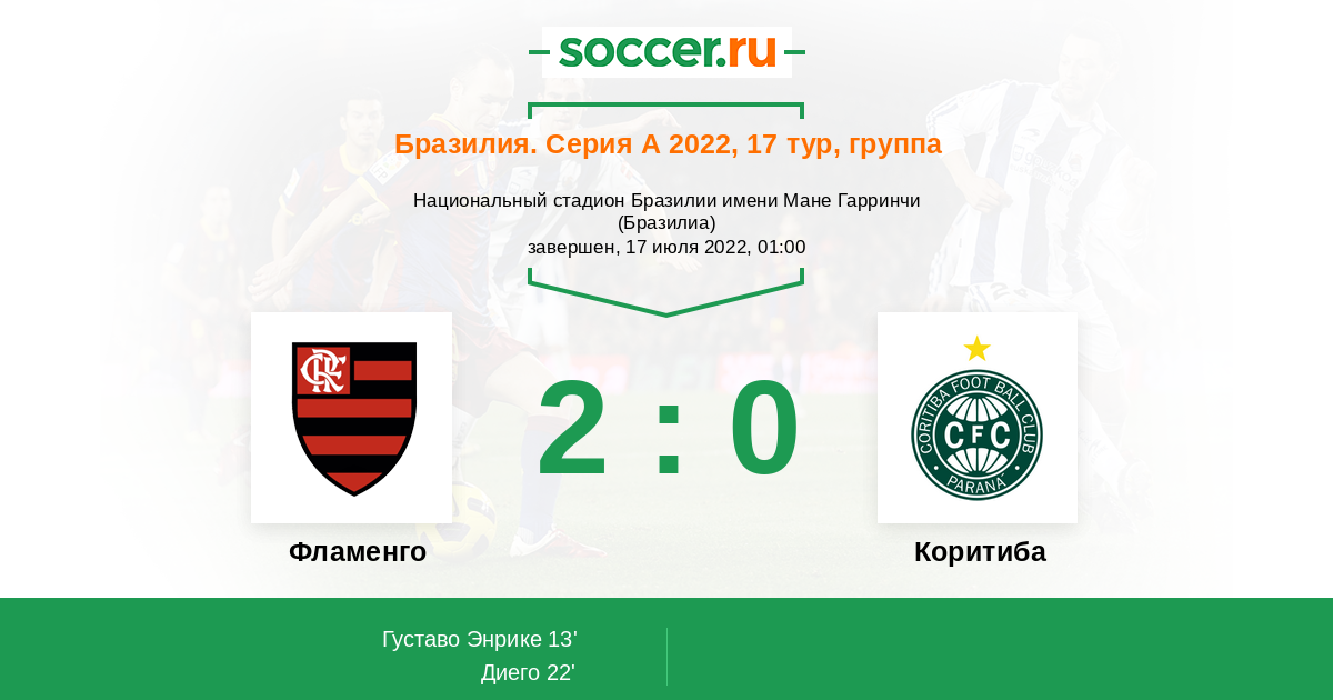В рамках 17-го тура чемпионата Бразилии «Фламенго» примет на домашней арене «Коритибу». Прогноз и анализ ставок на эту встречу доступен в нашем анонсе.
