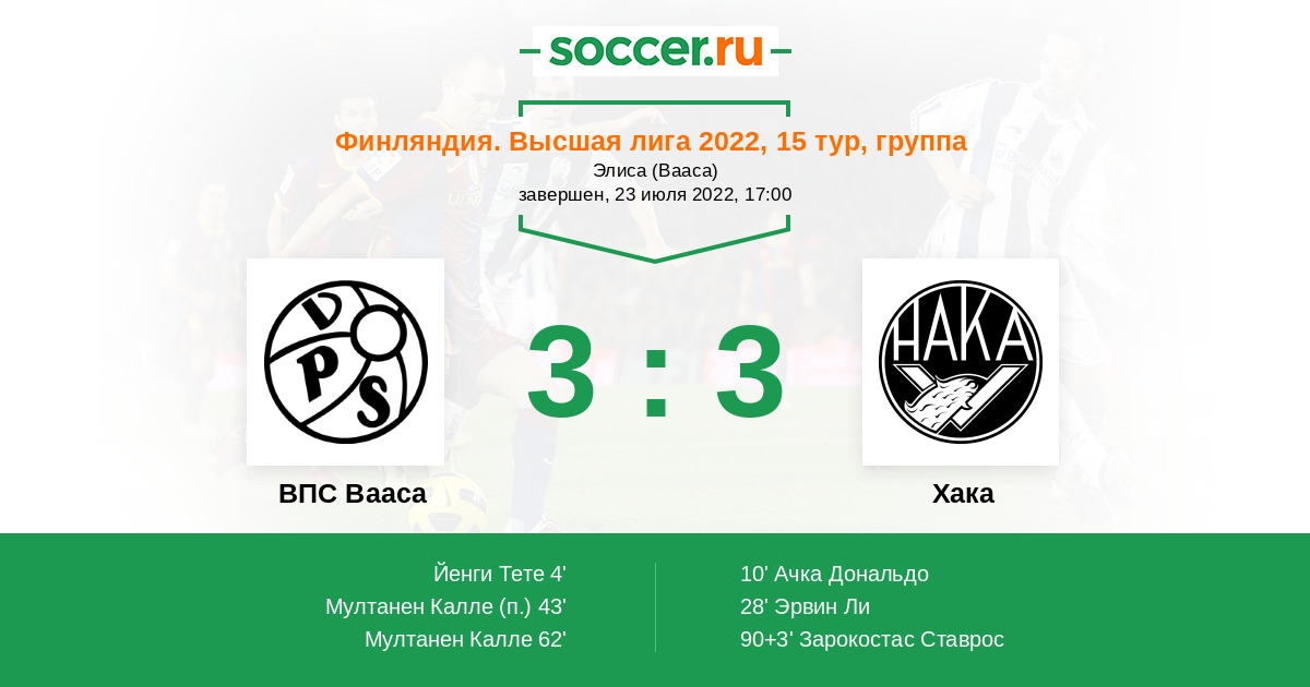 «ВПС Вааса» – «Хака». Прогноз на матч финской высшей лиги (23.07.2022)