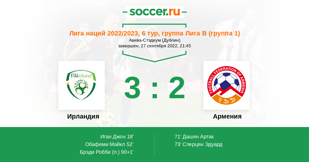 Ирландия – Армения. Прогноз на матч Лиги Наций (27.09.2022)