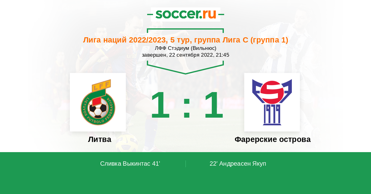 Литва — Фарерские острова. Прогноз на матч Лиги Наций УЕФА (22.09.2022)