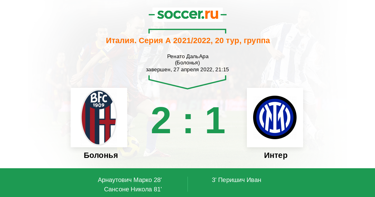 «Болонья» находится в середине турнирной таблицы и чувствует себя там вполне комфортно, но в последнее время команда крайне нестабильна. Этим вполне может воспользоваться «Интер», у которого явно есть в планах защитить титул. В последние месяцы «нерадзурри» набрали великолепную форму и добывают победу за победой. «Болонья» для такого «Интера» проблемой стать не должна.