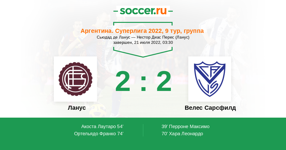 «Ланус» — «Велес Сарсфилд». Прогноз на матч Суперлиги Аргентины (21.07.2022)