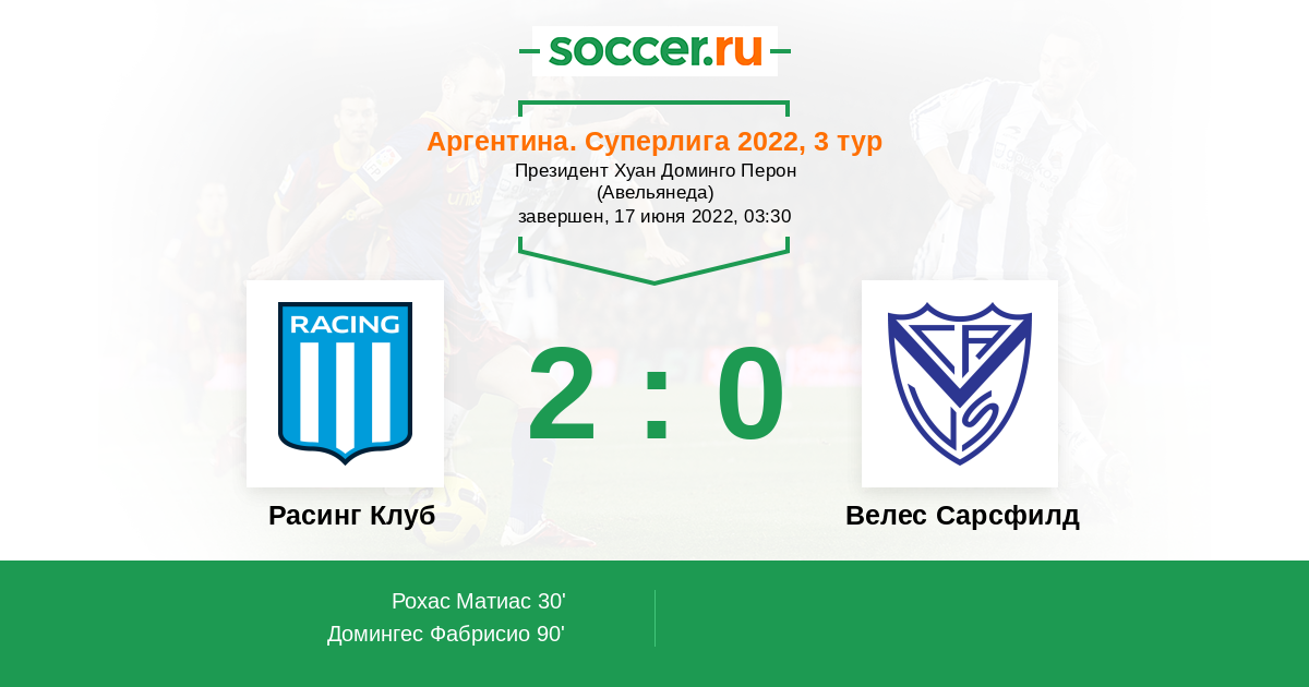 «Расинг» — «Велес Сарсфилд». Прогноз на матч Суперлиги Аргентины (17.06.2022)