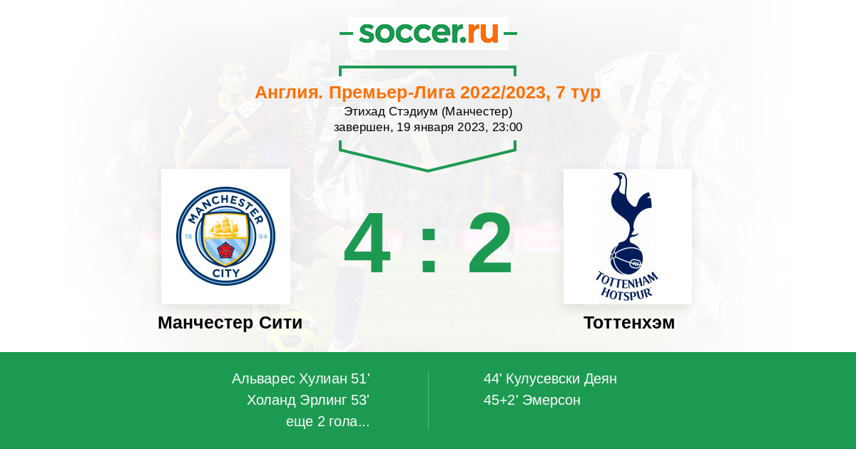 МС последний пару игр теряет обороты проиграв мю, отдав игру саутгемптону и сыграв в ничью с Эвертоном, да были две победы над и так разломаным Челси но не скажу что это показатель Холанд не отмечается уже 4 игры к ряду. Тоттенхэм тоже нельзя назвать машиной для побед есть свой проблемы бывает конечно и удивления по типу 0-4 в игре с Кристал пелас но и много нелепых, не внятных игр. Думаю это будет тоже что то не понятное и больше жду победу МС в 2-1 хотя ничья то же возможна