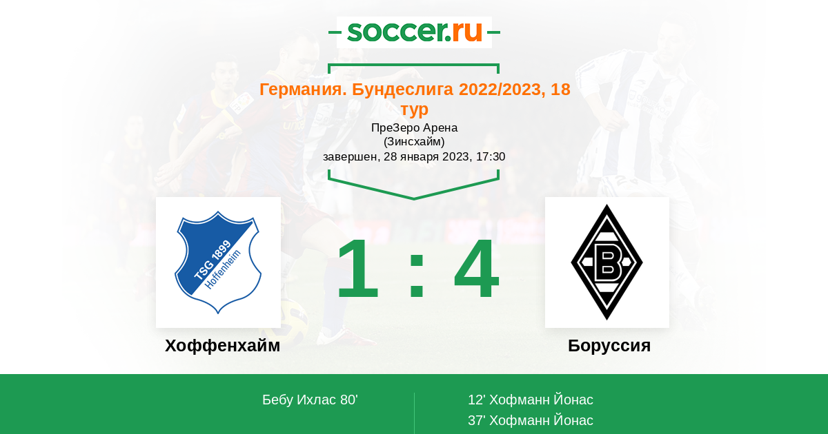 В 18 туре Бундеслиги «Хоффенхайм» ждет в гости «Боруссию» М. Мы предлагаем ознакомиться с прогнозами и обзорами ставок на поединок.