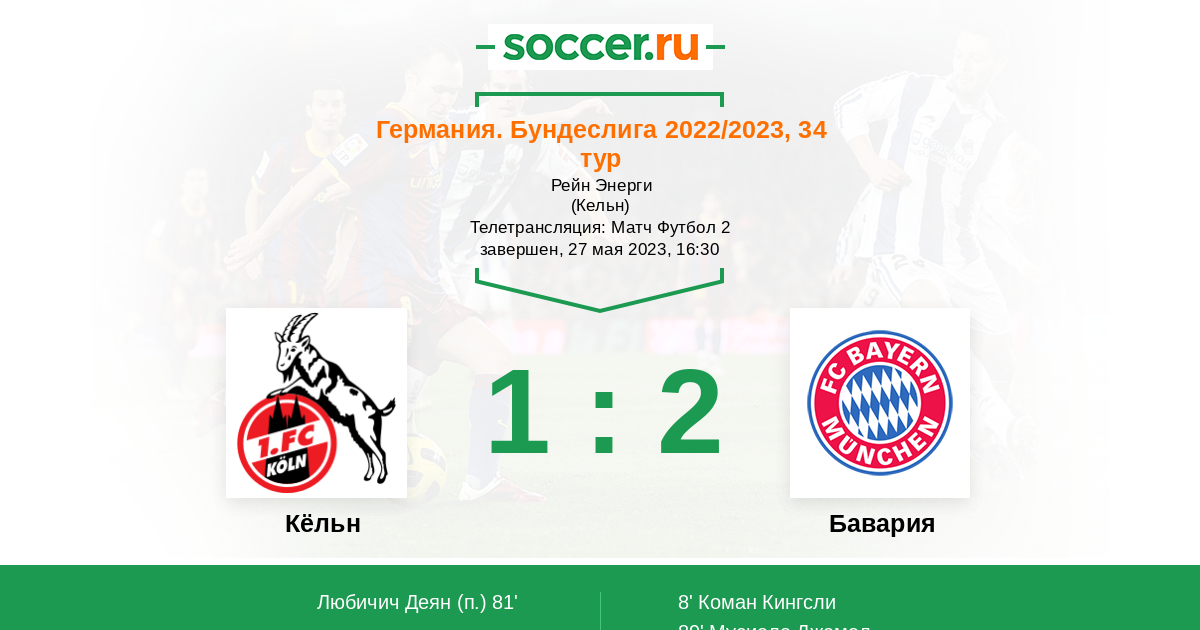 Записи блогов матча Кёльн против Бавария