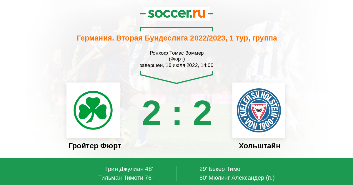 «Гройтер Фюрт» — «Хольштайн». Прогноз на матч второй Бундеслиги (16.07.2022)