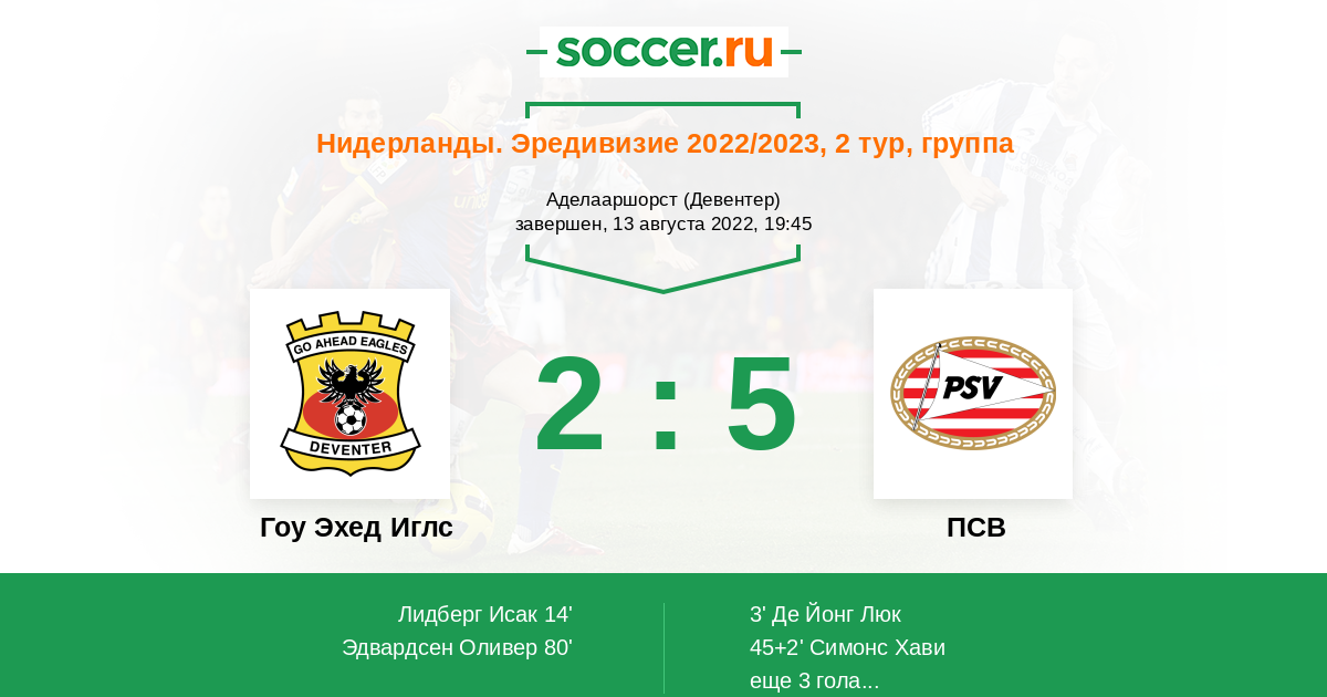 «Гоу Эхед Иглс» — ПСВ. Прогноз на матч Эредевизи (13.08.2022)