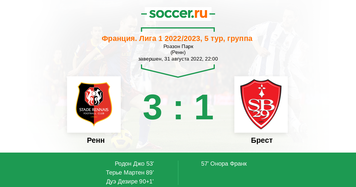 Записи блогов матча Ренн против Брест