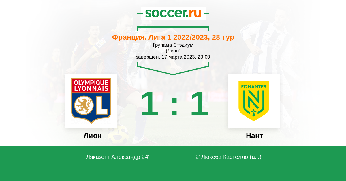 «Лион» — «Нант». Прогноз на матч Лиги 1 (17.03.2023)