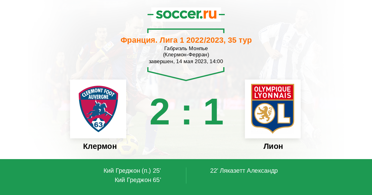 В 35 туре чемпионата Франции «Клермон» сыграет с «Лионом» на своем стадионе. Предлагаем ознакомиться с прогнозами на матч и обзором ставок букмекеров.