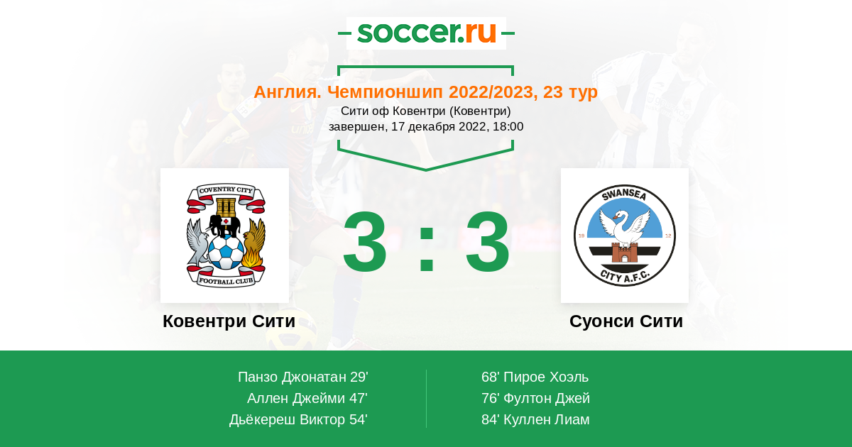 «Ковентри Сити» — «Суонси Сити». Прогноз на матч Чемпионшипа (17.12.2022)