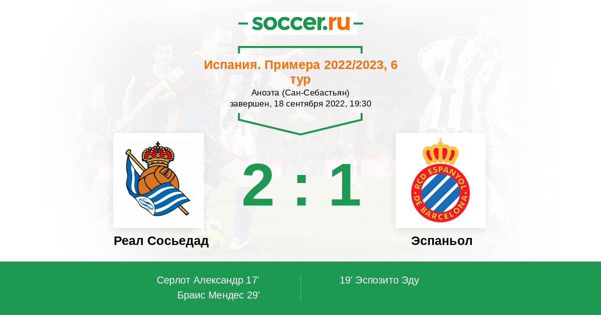 «Реал Сосьедад» — «Эспаньол». Прогноз на матч испанской Примеры (18.09.2022)