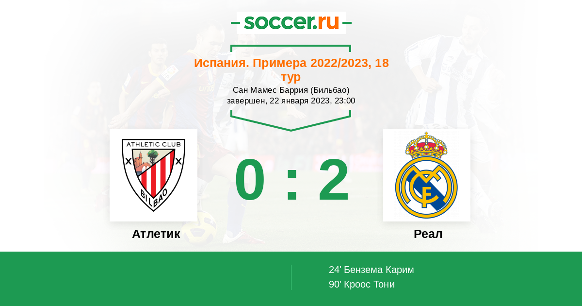 Записи блогов матча Атлетик против Реал
