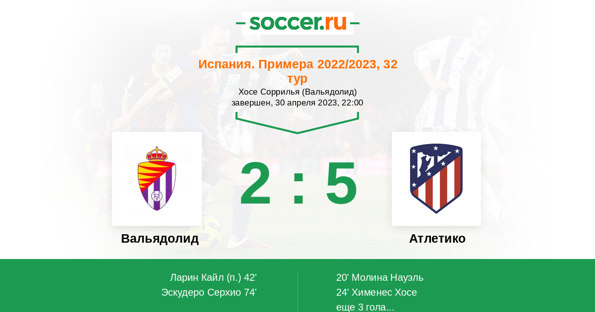 Записи блогов матча Вальядолид против Атлетико