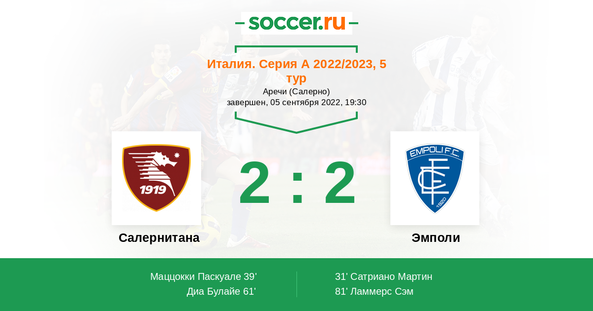 В пятом туре Серии А нас ждет поединок, в котором «Салернитана» сразится с «Эмполи». Вашему вниманию предлагаем обзор ставок букмекеров и прогноз на эту встречу.