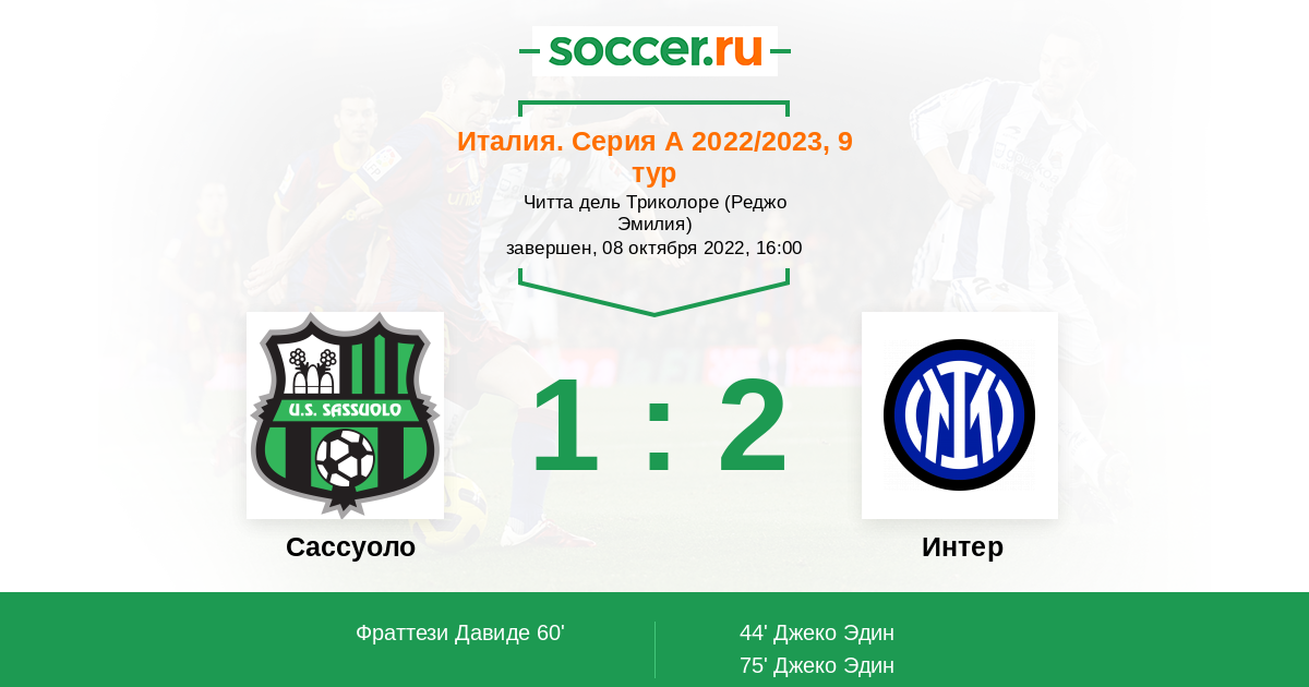 Записи блогов матча Сассуоло против Интер