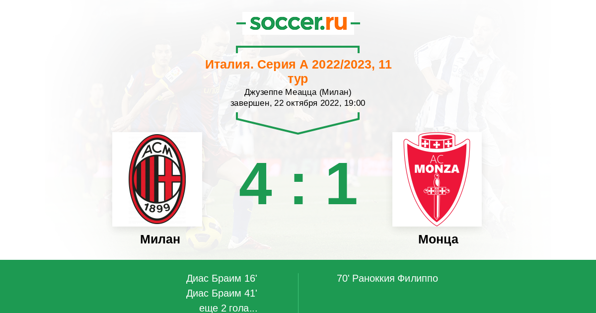 «Милан» — «Монца». Прогноз на матч итальянской Серии А (22.10.2022)